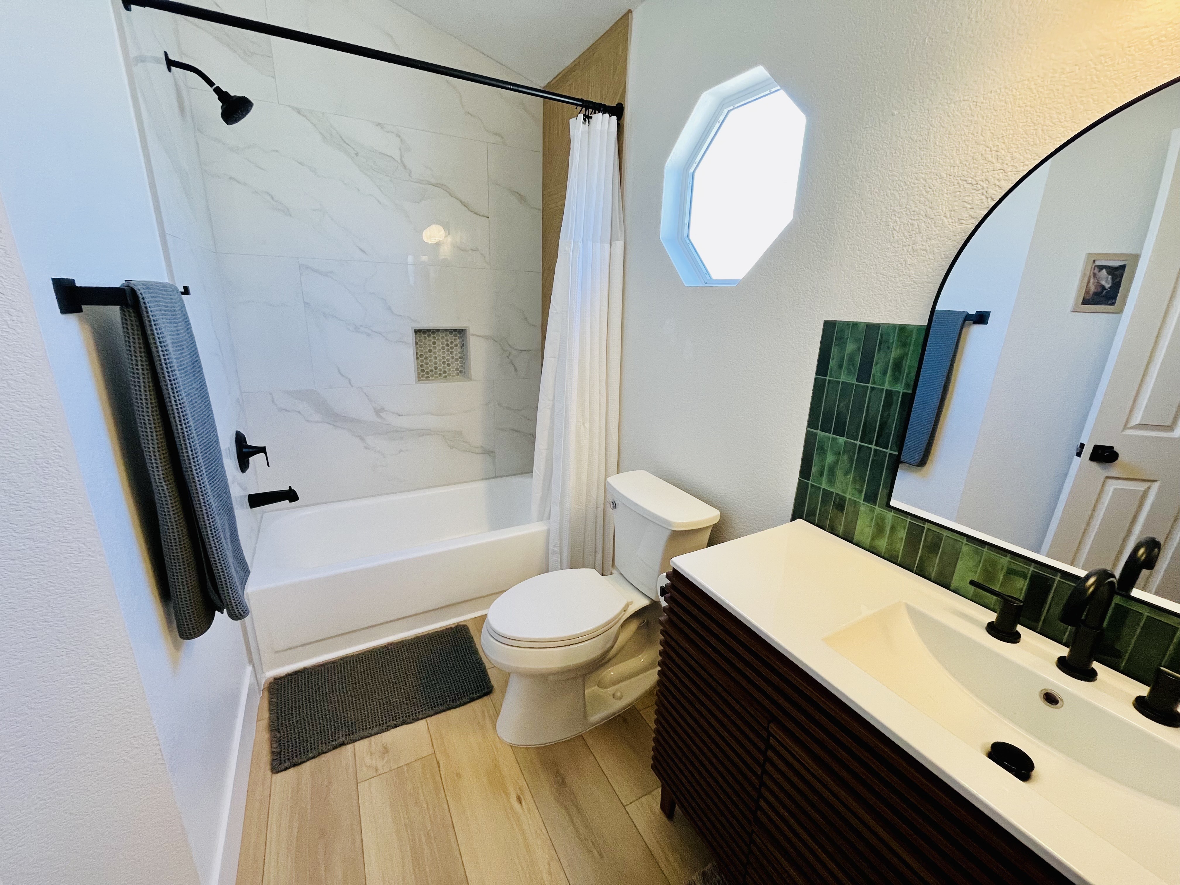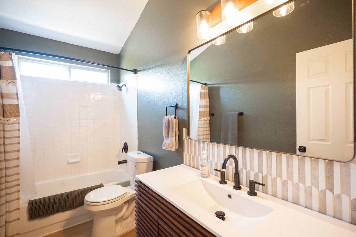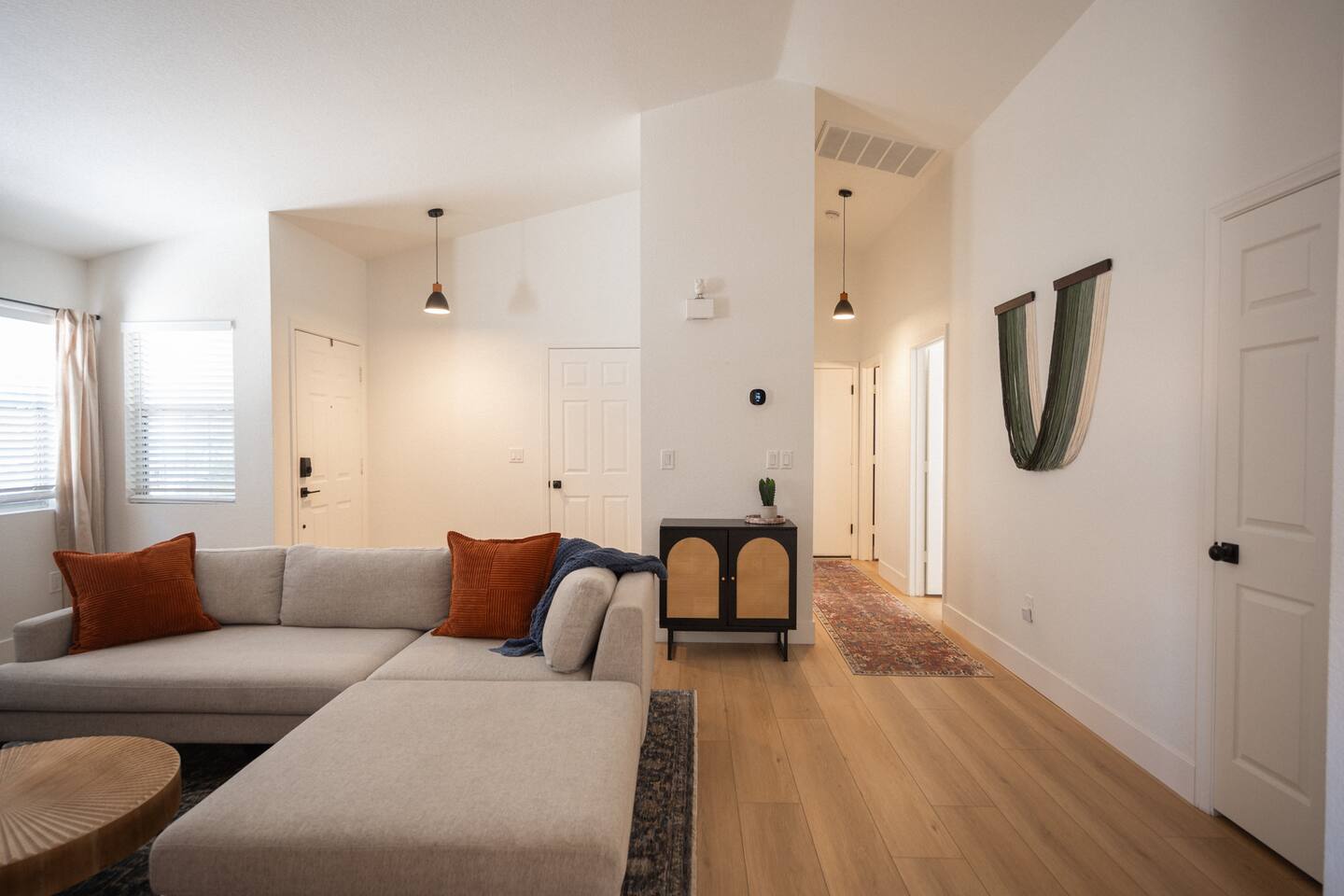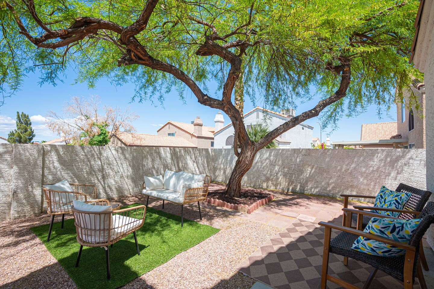 This 3 bed/2 bath home is located in Summerlin just around the corner from Boca Park, 20 min from The Strip and the Arts District, 10 min from Red Rock Canyon, 20 min from the Airport, and 45 min from Valley of Fire State Park and Lake Mead. Our newly renovated home was thoughtfully designed to create the perfect R&R for all of your adventures! Living Space: This is a 1300 square foot single level home. Our full kitchen has pots & pans, a stove, microwave, fridge, toaster, Keurig and pods, hot water kettle and other cooking essentials (silverware, cups, dishes etc.). Beds: 1 king bed in primary, 2 queen beds in guest rooms There is a workspace in 1 bedroom in case you need to work remote. All beds have memory foam mattresses and high-quality linens to ensure a great nights sleep. Bath: There are 2 full sized baths that is stocked with essentials and linens. Internet: We have a designated workspace in one of the bedrooms and high speed internet. Connection info will be shared after booking. Outdoor Living: Our outdoor space offers seating and lounging areas to enjoy the desert sunshine. Enjoy coffee outside in the morning, or watch the sunset over the La Madre mountain views. The yard is fully fenced. Parking/Neighborhood Info: There is parking available in the 2 car garage and driveway, no street parking is available. We are situated at the end of a cul-de-sac with minimal traffic. Business license: G73-01426